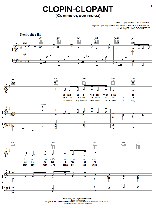 Download or print Frank Sinatra Comme Ci, Comme Ca sheet music, chords and digital score arranged for Piano, Vocal & Guitar Chords (Right-Hand Melody). This Country score includes 4 page(s).