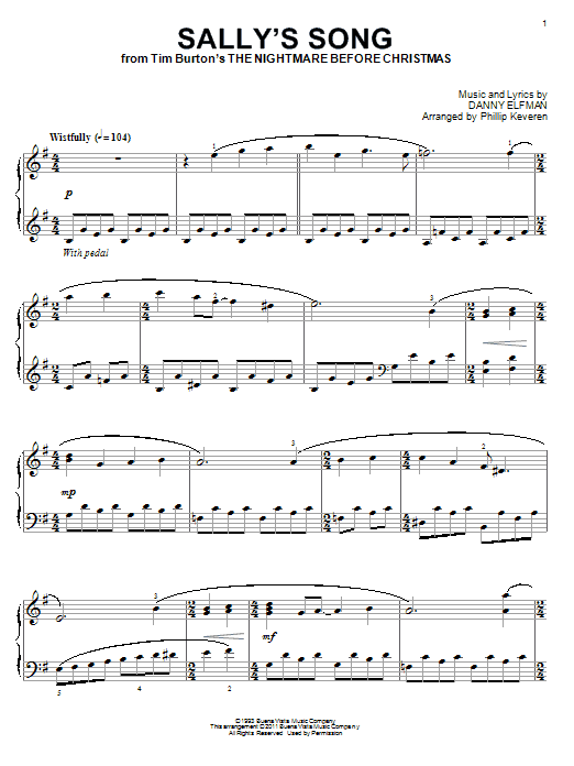 Quick facts Sally's Song (from The Nightmare Before Christmas) (arr. Phillip Keveren) about digital sheet music