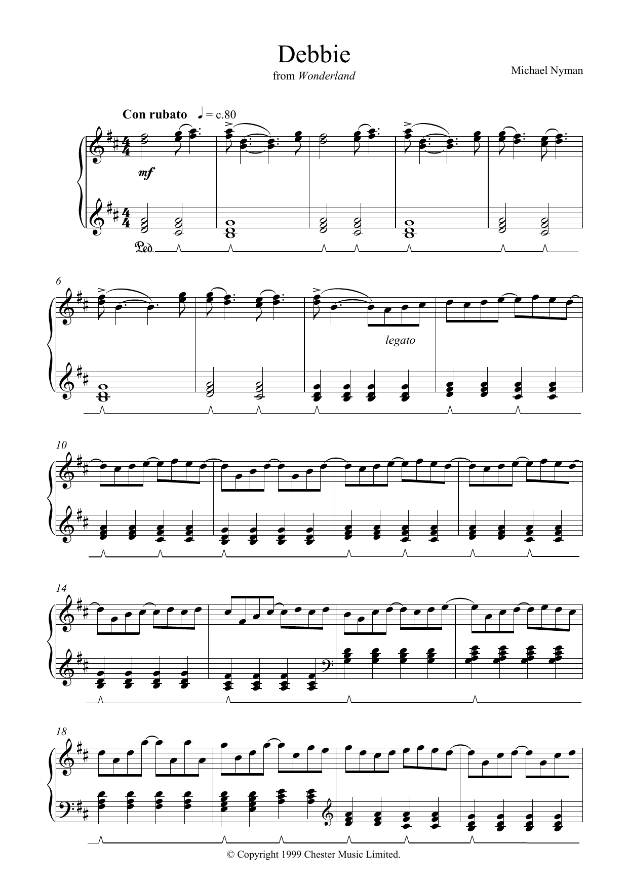 Download or print Michael Nyman Debbie (from Wonderland) sheet music, chords and digital score arranged for Piano Solo. This Classical score includes 3 page(s).