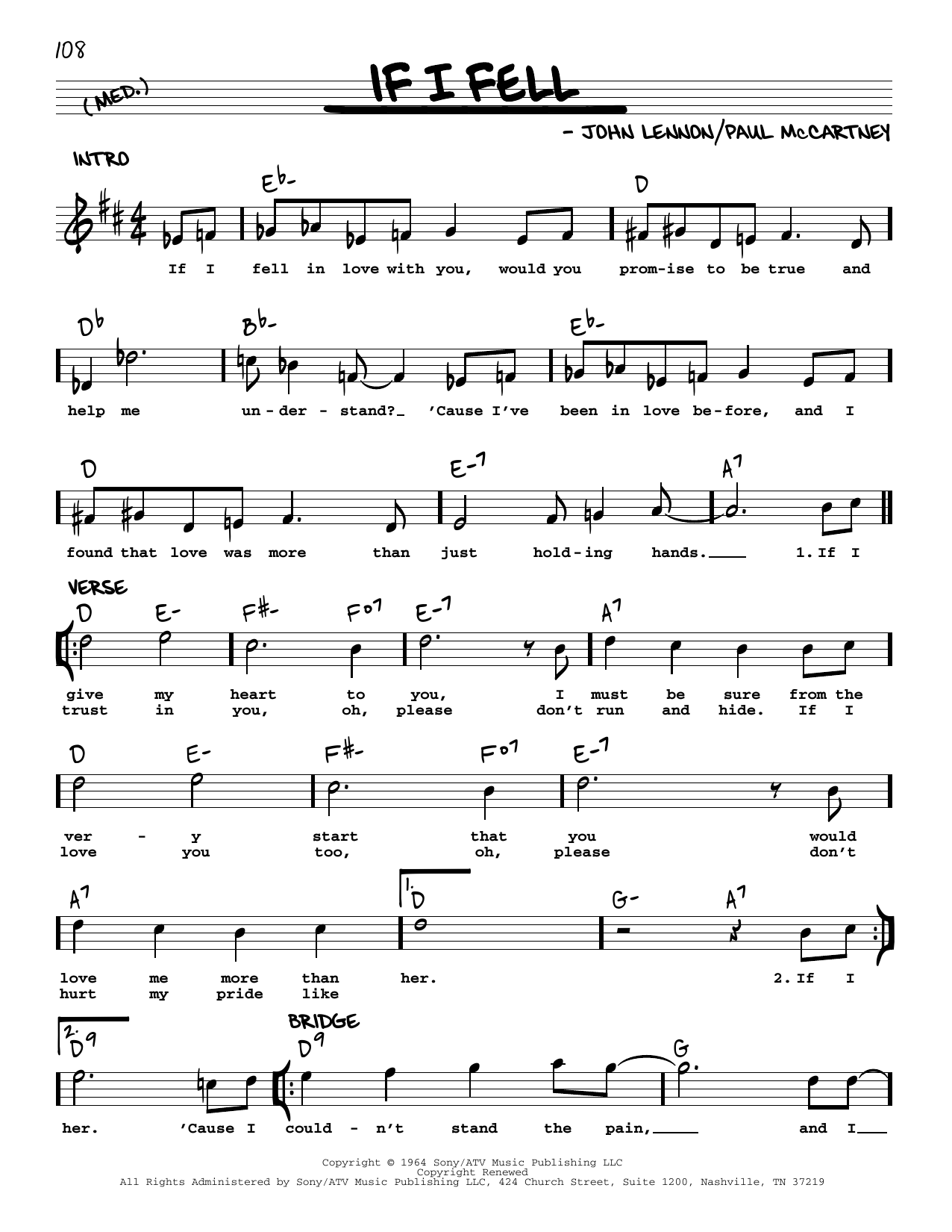 Download or print The Beatles If I Fell [Jazz version] sheet music, chords and digital score arranged for Real Book – Melody, Lyrics & Chords. This Jazz score includes 2 page(s).