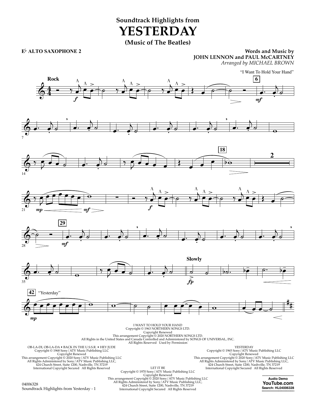 Quick facts Highlights from Yesterday (Music Of The Beatles) (arr. Michael Brown) - Eb Alto Saxophone 2 about digital sheet music