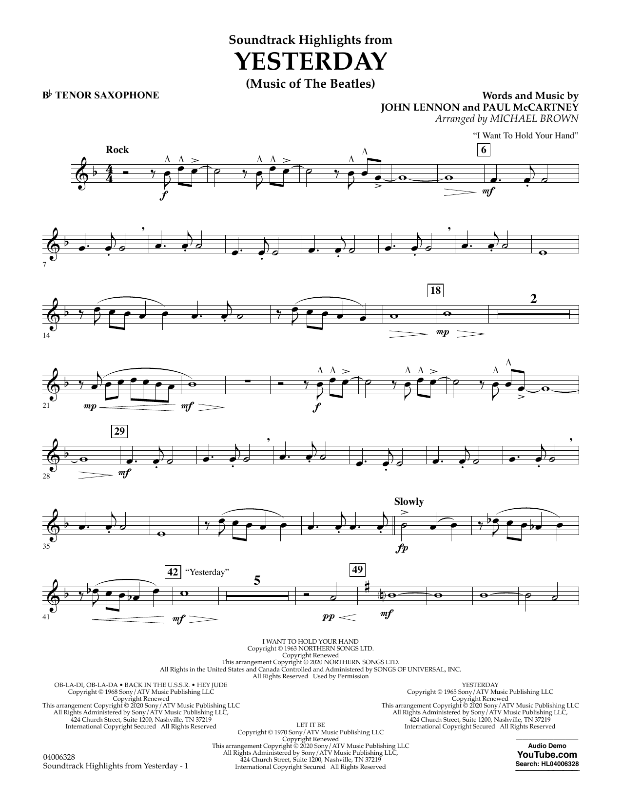 Quick facts Highlights from Yesterday (Music Of The Beatles) (arr. Michael Brown) - Bb Tenor Saxophone about digital sheet music