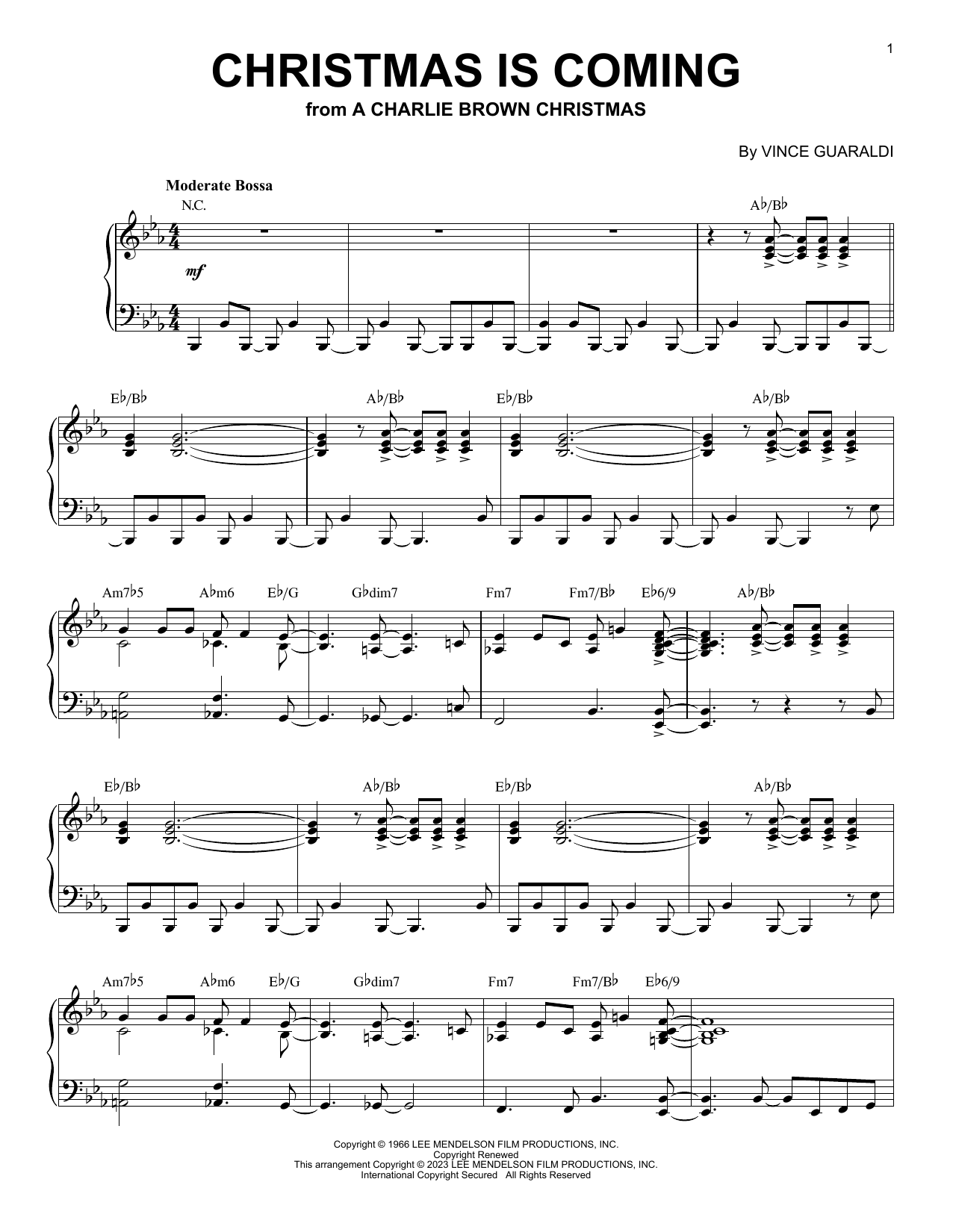 Download or print Vince Guaraldi Christmas Is Coming [Jazz version] (arr. Brent Edstrom) sheet music, chords and digital score arranged for Piano Solo. This Children score includes 6 page(s).