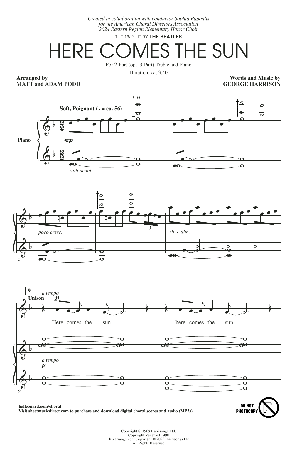 Download or print The Beatles Here Comes The Sun (arr. Matt and Adam Podd) sheet music, chords and digital score arranged for Choir. This Pop score includes 11 page(s).