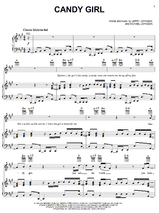 Download or print New Edition Candy Girl sheet music, chords and digital score arranged for Piano, Vocal & Guitar Chords (Right-Hand Melody). This Pop score includes 8 page(s).