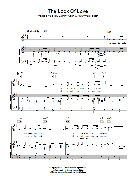 Download or print Frank Sinatra The Look Of Love sheet music, chords and digital score arranged for Piano, Vocal & Guitar Chords. This Standards score includes 4 page(s).