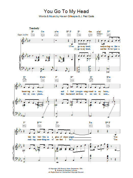 Download or print Frank Sinatra You Go To My Head sheet music, chords and digital score arranged for Piano, Vocal & Guitar Chords (Right-Hand Melody). This Jazz score includes 4 page(s).