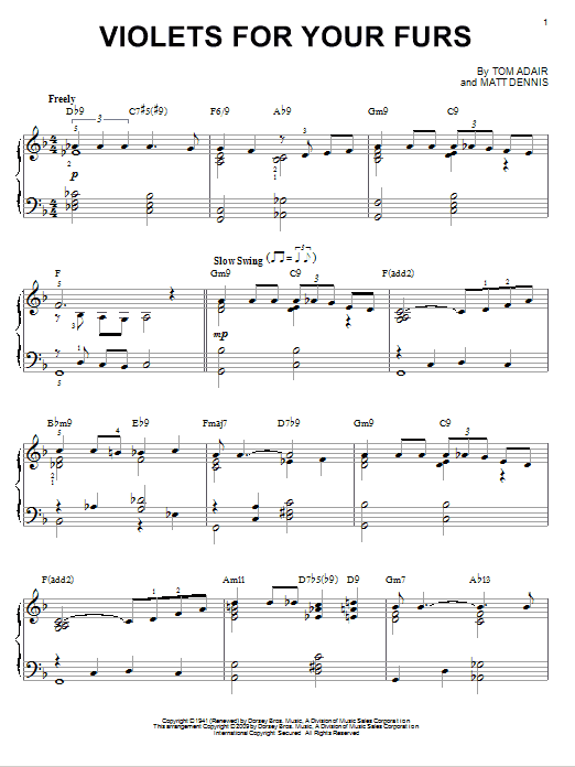 Download or print Frank Sinatra Violets For Your Furs [Jazz version] (arr. Brent Edstrom) sheet music, chords and digital score arranged for Piano Solo. This Jazz score includes 5 page(s).