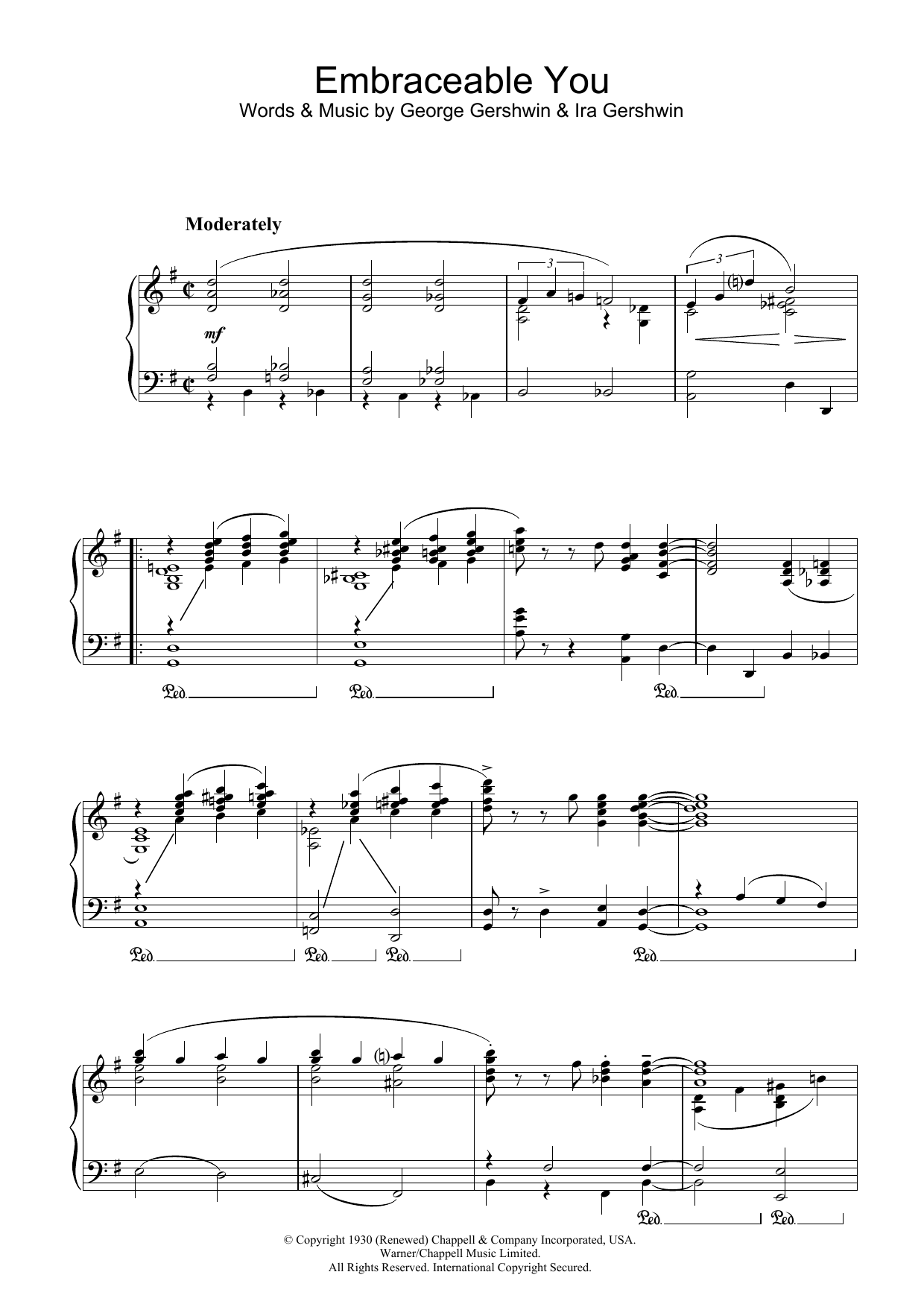 Download or print George Gershwin Embraceable You sheet music, chords and digital score arranged for Piano, Vocal & Guitar Chords (Right-Hand Melody). This Jazz score includes 4 page(s).