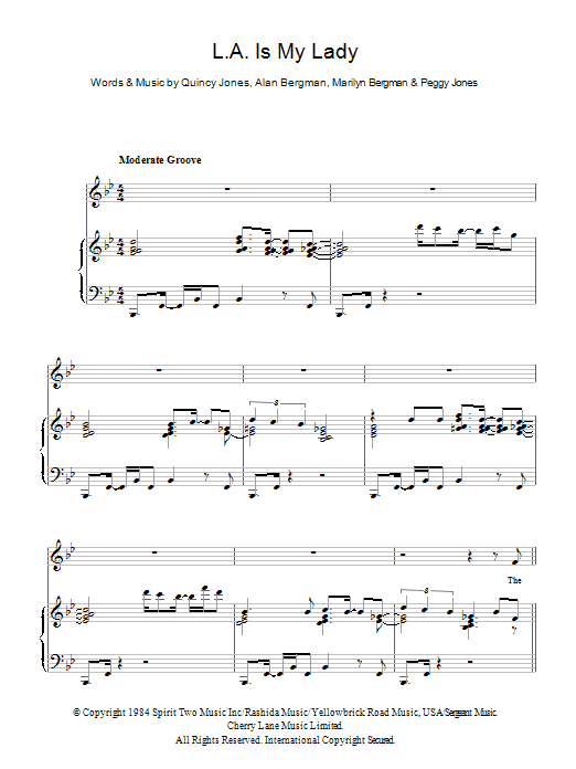 Download or print Frank Sinatra L.A. Is My Lady sheet music, chords and digital score arranged for Piano, Vocal & Guitar Chords. This Jazz score includes 5 page(s).