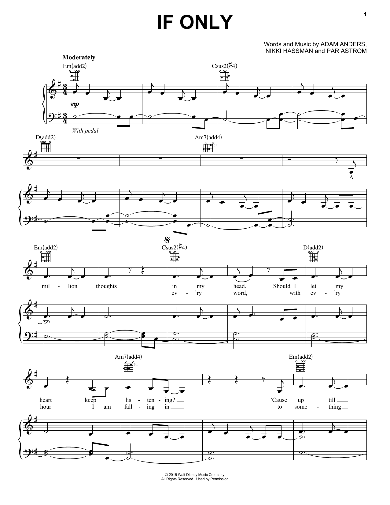 Download or print Dove Cameron If Only (from Disney's Descendants) sheet music, chords and digital score arranged for Piano, Vocal & Guitar Chords (Right-Hand Melody). This Disney score includes 7 page(s).