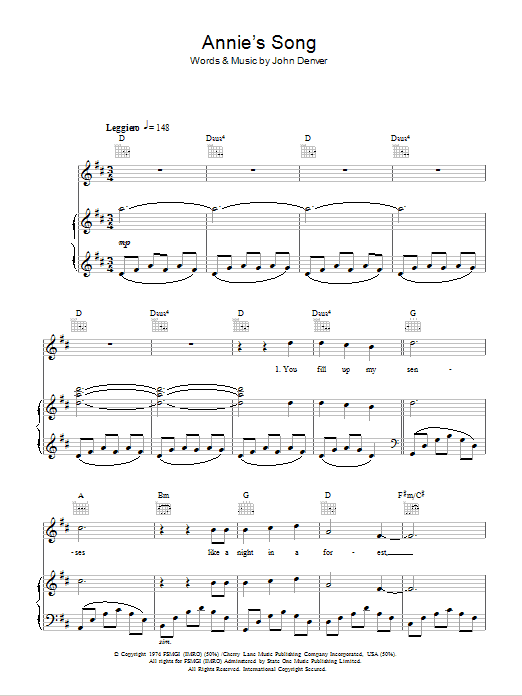 Download or print Rhydian Annie's Song sheet music, chords and digital score arranged for Piano, Vocal & Guitar Chords. This Country score includes 7 page(s).
