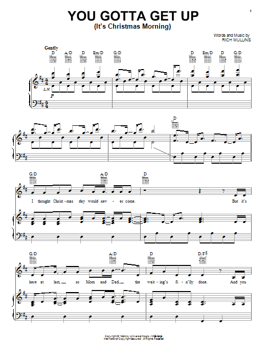 Download or print Rich Mullins You Gotta Get Up (It's Christmas Morning) sheet music, chords and digital score arranged for Piano, Vocal & Guitar Chords (Right-Hand Melody). This Christmas score includes 6 page(s).
