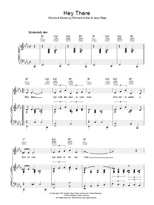 Download or print Richard Adler Hey There sheet music, chords and digital score arranged for Piano, Vocal & Guitar Chords. This Musical/Show score includes 3 page(s).