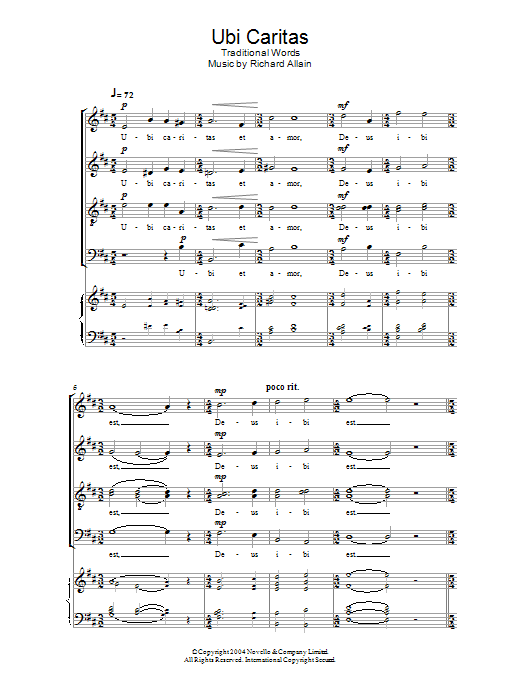 Download or print Richard Allain Ubi Caritas sheet music, chords and digital score arranged for Choir. This Sacred score includes 13 page(s).