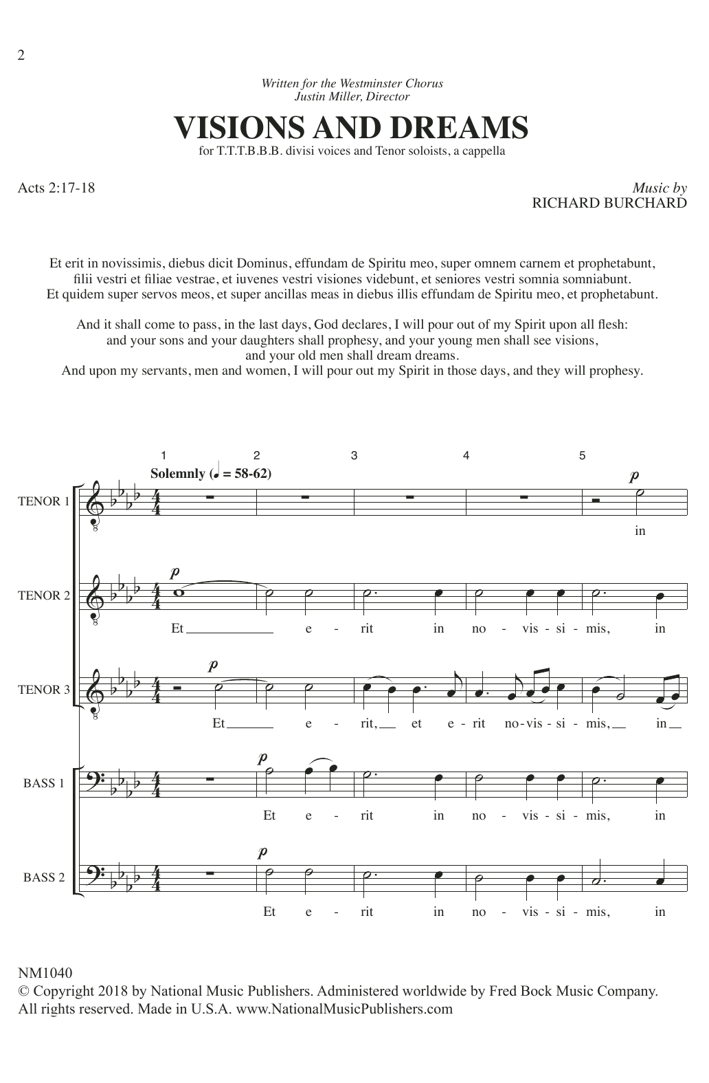 Download or print Richard Burchard Visions And Dreams sheet music, chords and digital score arranged for TTBB Choir. This Sacred score includes 15 page(s).