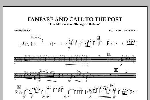 Download or print Richard L. Saucedo Fanfare and Call to the Post - Baritone B.C. sheet music, chords and digital score arranged for Concert Band. This Concert score includes 1 page(s).