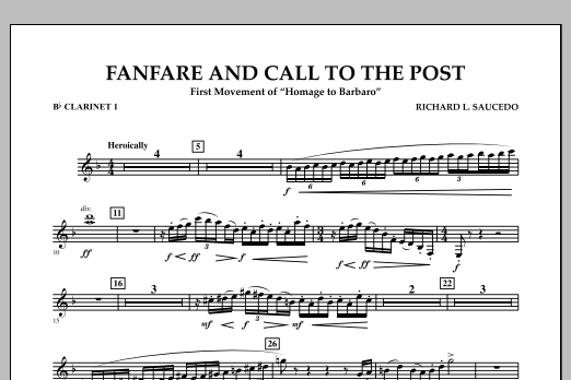 Download or print Richard L. Saucedo Fanfare and Call to the Post - Bb Clarinet 1 sheet music, chords and digital score arranged for Concert Band. This Concert score includes 1 page(s).