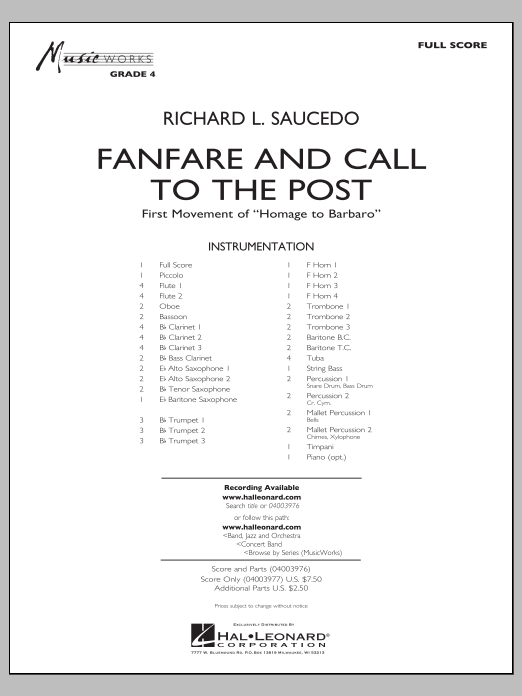 Download or print Richard L. Saucedo Fanfare and Call to the Post - Conductor Score (Full Score) sheet music, chords and digital score arranged for Concert Band. This Concert score includes 12 page(s).