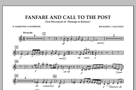Download or print Richard L. Saucedo Fanfare and Call to the Post - Eb Baritone Saxophone sheet music, chords and digital score arranged for Concert Band. This Concert score includes 1 page(s).