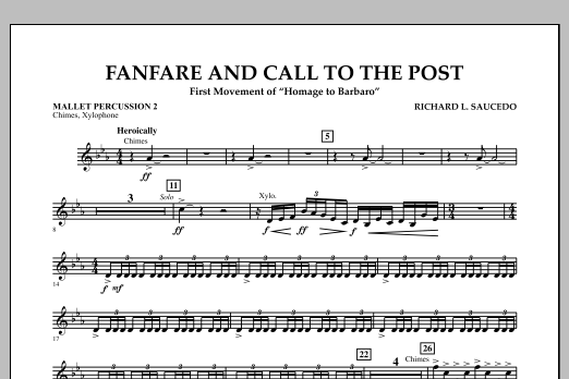 Download or print Richard L. Saucedo Fanfare and Call to the Post - Mallet Percussion 2 sheet music, chords and digital score arranged for Concert Band. This Concert score includes 1 page(s).