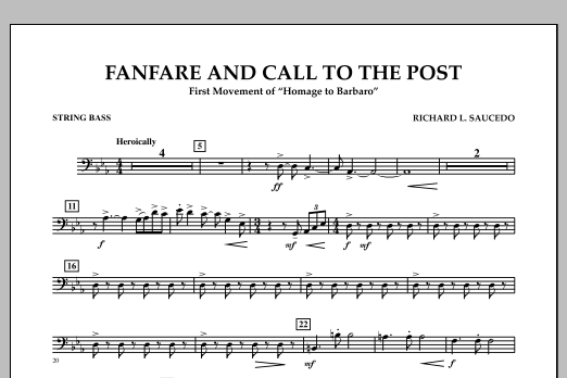 Download or print Richard L. Saucedo Fanfare and Call to the Post - String Bass sheet music, chords and digital score arranged for Concert Band. This Concert score includes 1 page(s).