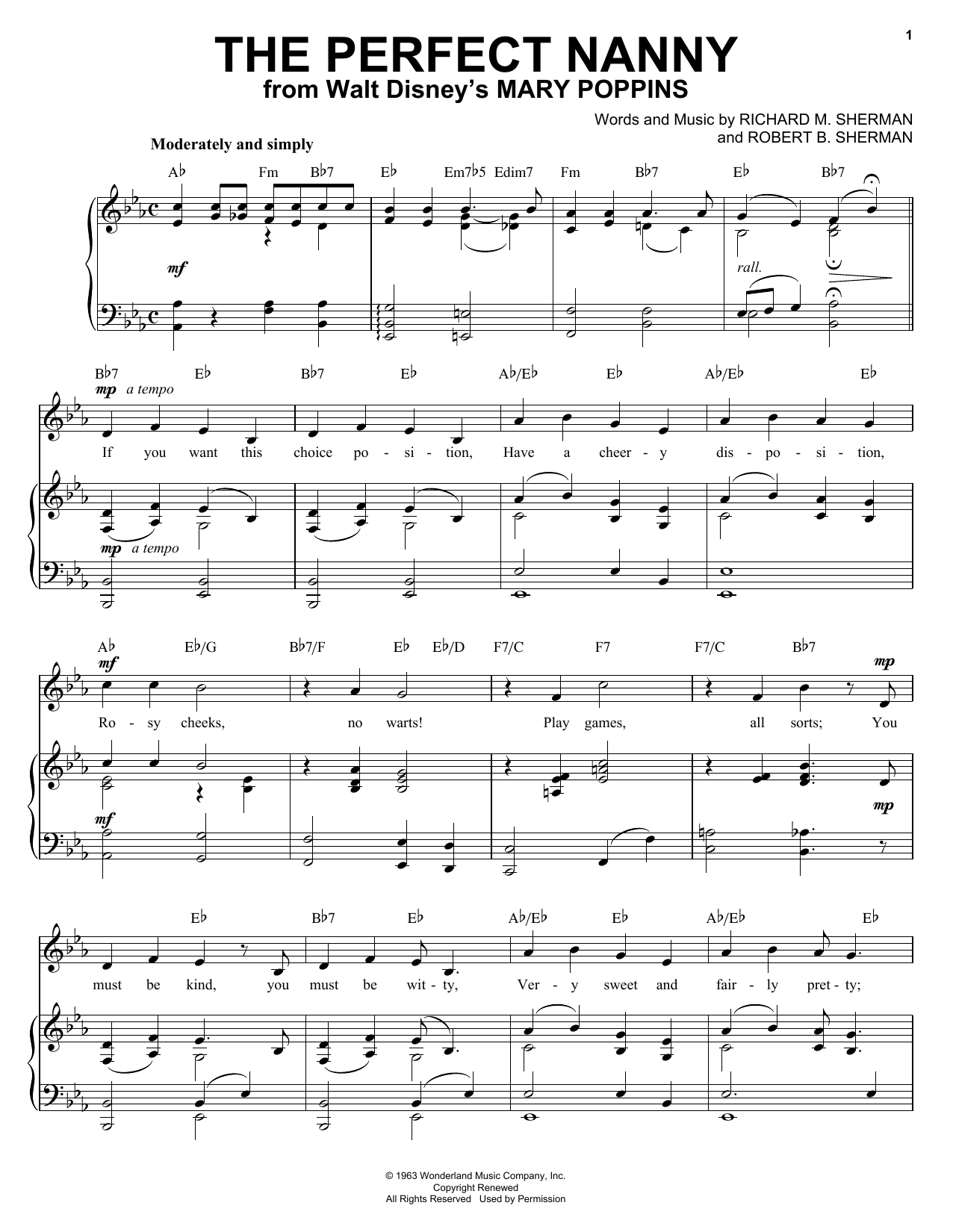 Download or print Sherman Brothers The Perfect Nanny sheet music, chords and digital score arranged for Vocal Duet. This Disney score includes 4 page(s).