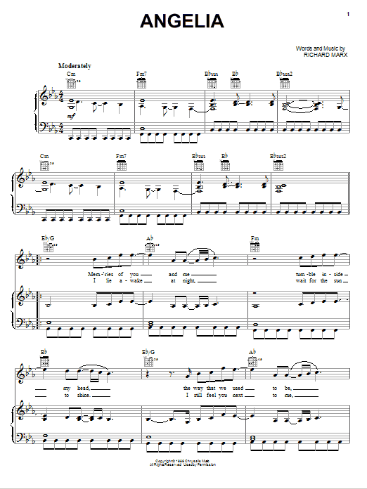 Download or print Richard Marx Angelia sheet music, chords and digital score arranged for Easy Piano. This Rock score includes 5 page(s).