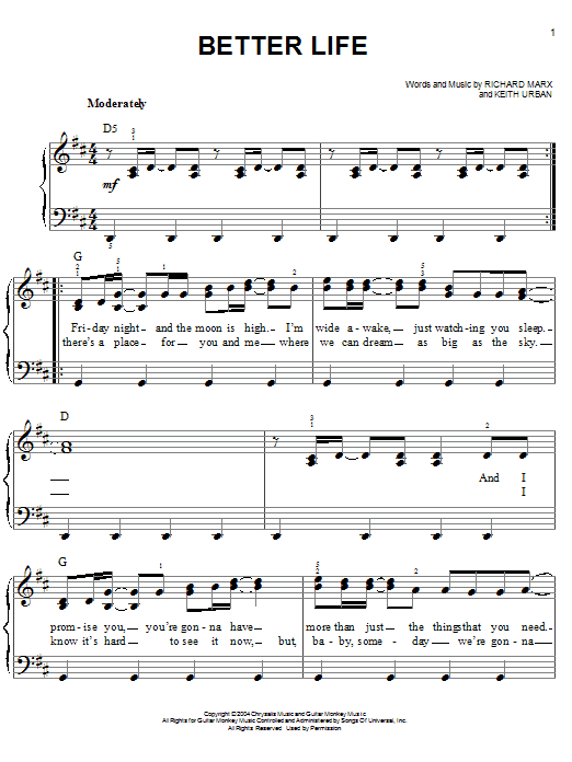Download or print Richard Marx Better Life sheet music, chords and digital score arranged for Easy Piano. This Pop score includes 7 page(s).