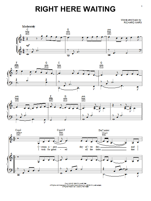 Download or print Richard Marx Right Here Waiting sheet music, chords and digital score arranged for Cello Solo. This Love score includes 1 page(s).