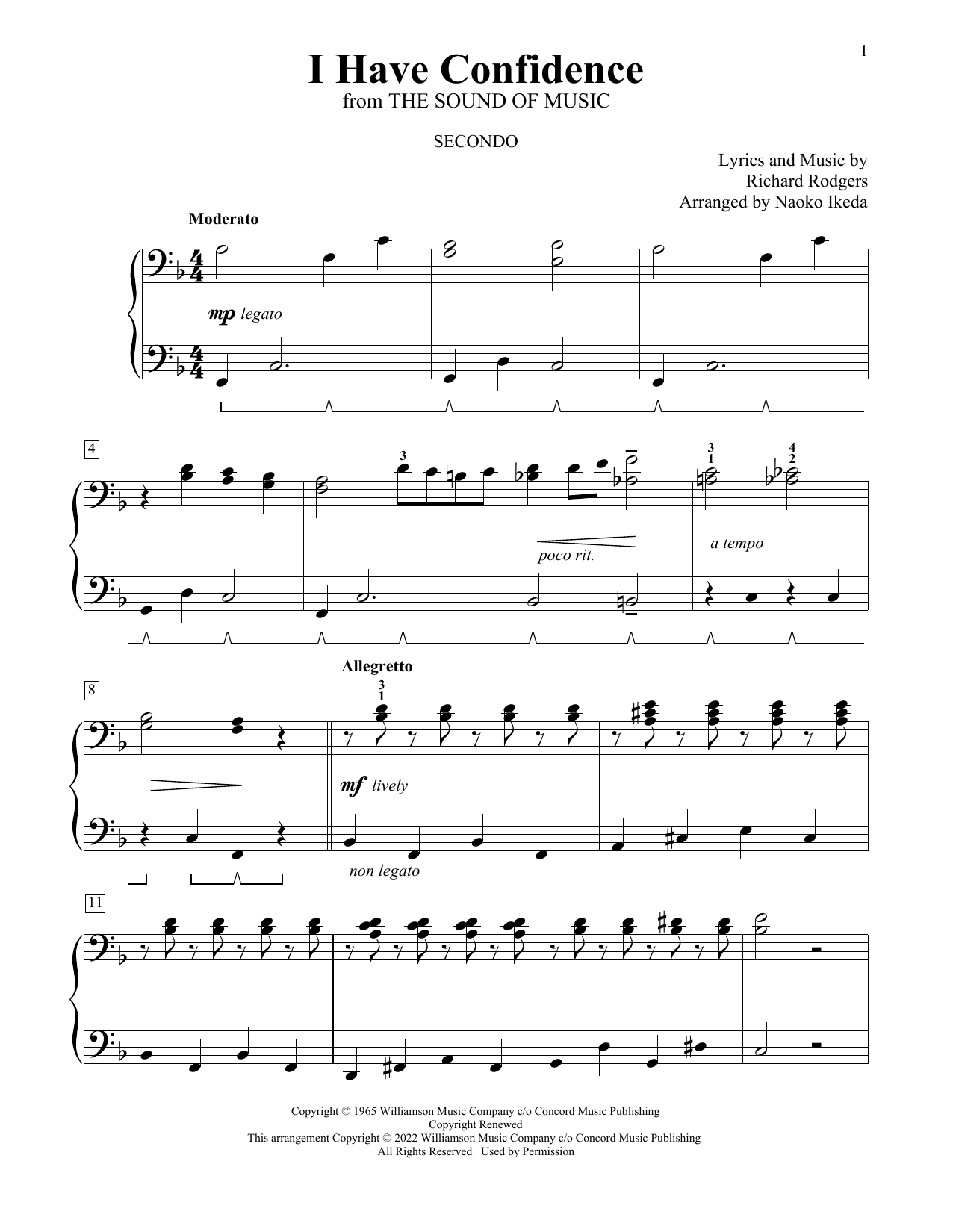 Download or print Richard Rodgers I Have Confidence (from The Sound Of Music) (arr. Naoko Ikeda) sheet music, chords and digital score arranged for Piano Duet. This Broadway score includes 4 page(s).