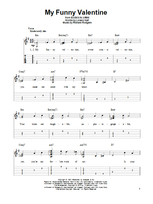 Download or print Richard Rodgers My Funny Valentine sheet music, chords and digital score arranged for Solo Guitar. This Musical/Show score includes 2 page(s).