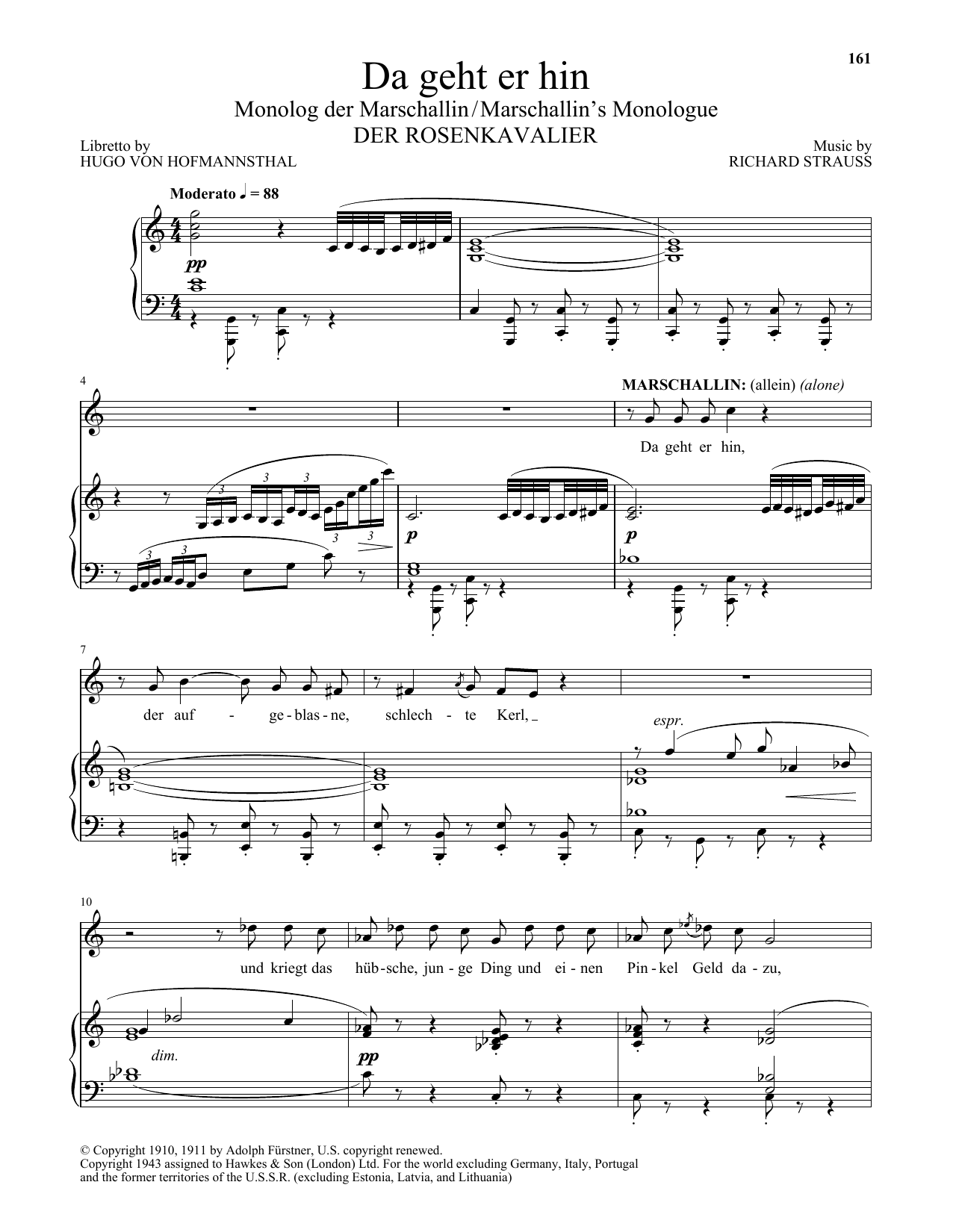 Download or print Richard Strauss Da Geht Er Hin (The Marschallin's Monologue) (from Der Rosenkavalier) sheet music, chords and digital score arranged for Piano & Vocal. This Classical score includes 7 page(s).