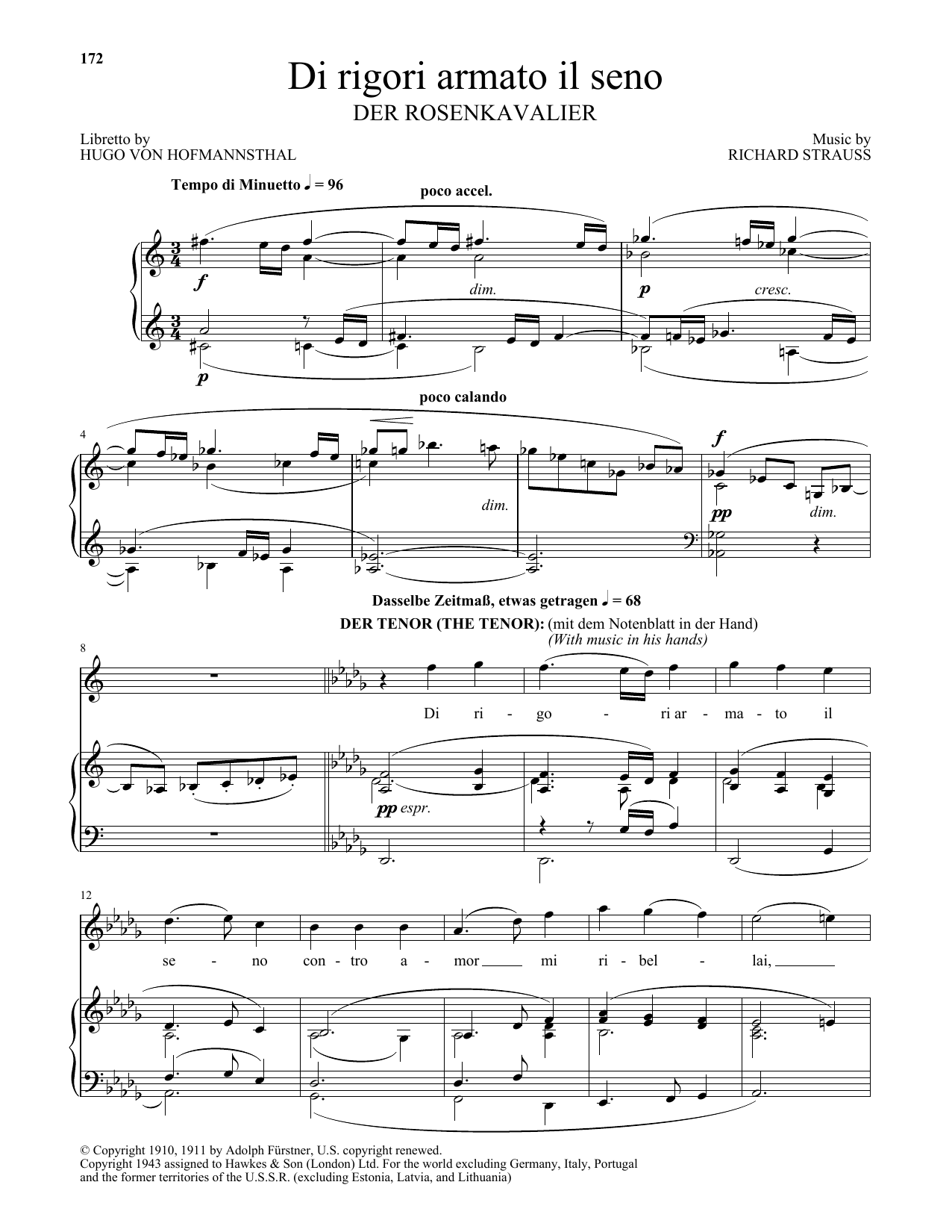 Download or print Richard Strauss Di Rigori Armato Il Seno sheet music, chords and digital score arranged for Piano & Vocal. This Classical score includes 3 page(s).