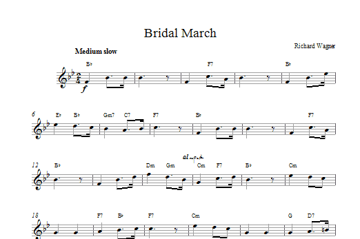 Download or print Richard Wagner Bridal March sheet music, chords and digital score arranged for Flute Solo. This Classical score includes 2 page(s).