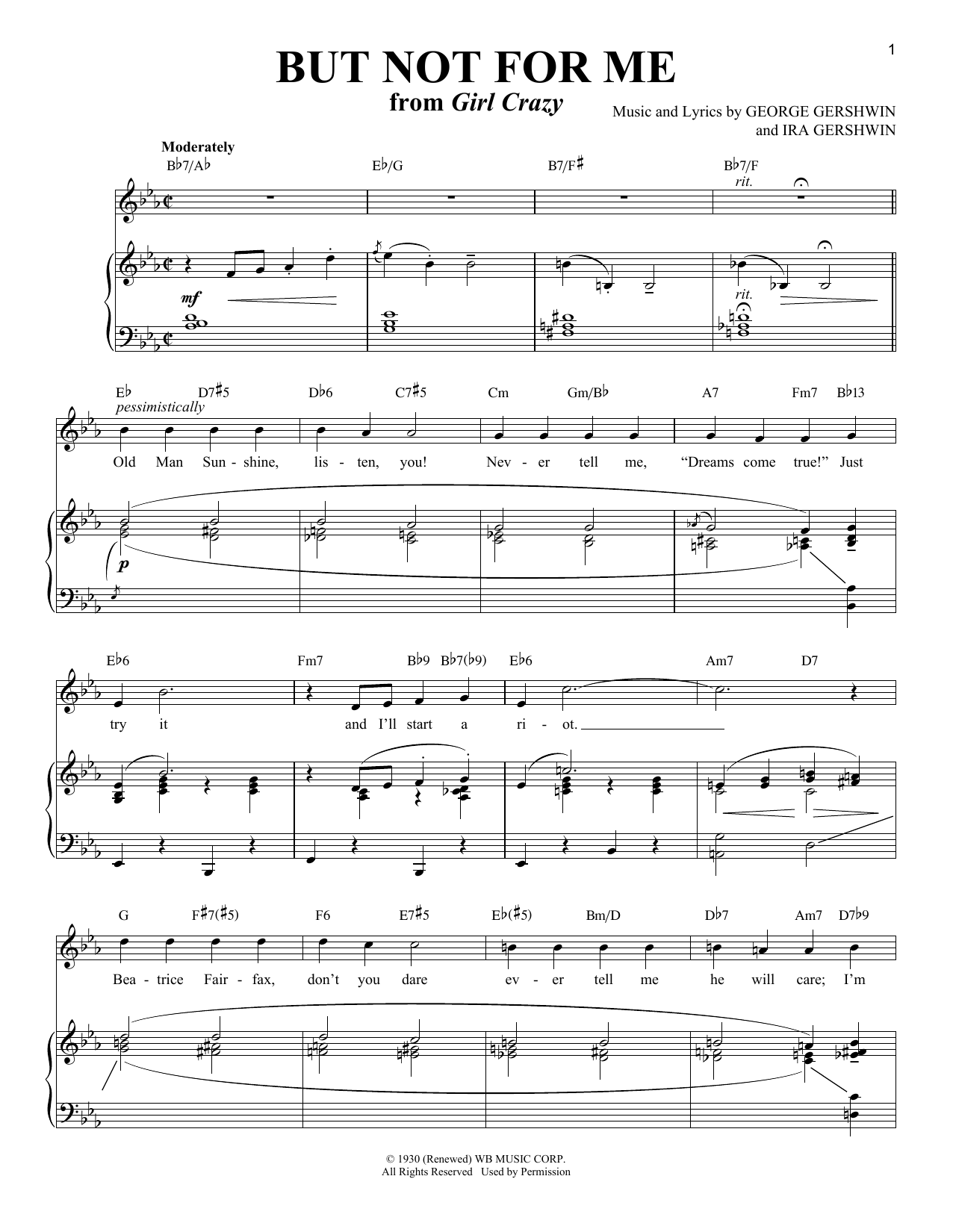 Download or print Richard Walters But Not For Me sheet music, chords and digital score arranged for Piano & Vocal. This Jazz score includes 4 page(s).