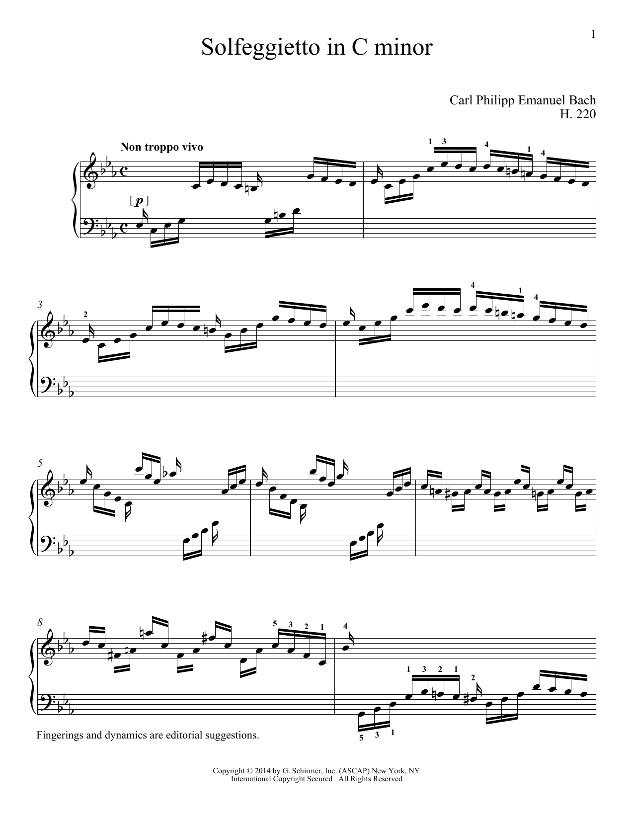 Download or print Carl Philipp Emanuel Bach Solfeggietto (ed. Richard Walters) sheet music, chords and digital score arranged for Piano Solo. This Classical score includes 3 page(s).
