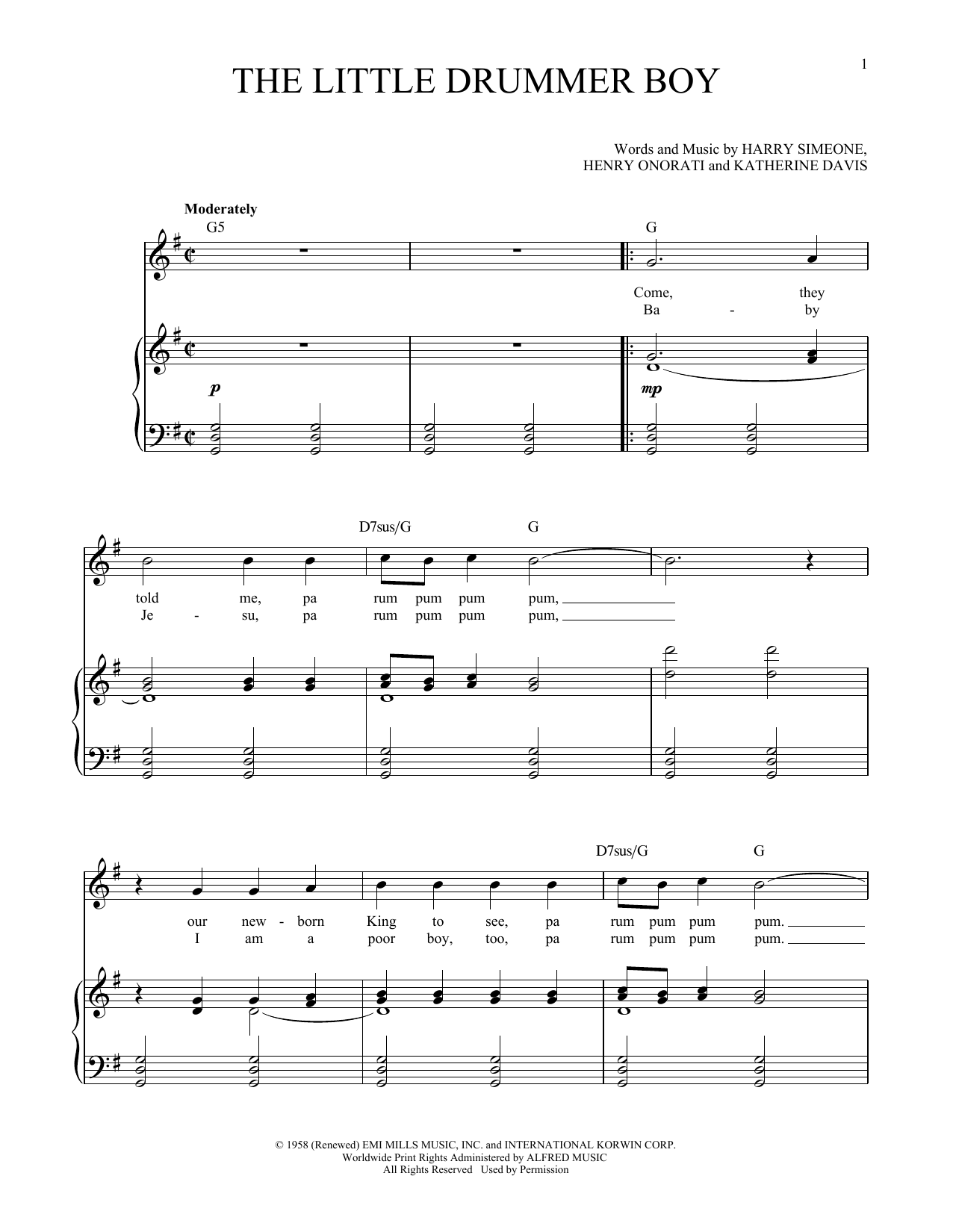 Download or print Katherine K. Davis The Little Drummer Boy (arr. Richard Walters) sheet music, chords and digital score arranged for Piano & Vocal. This Christmas score includes 5 page(s).