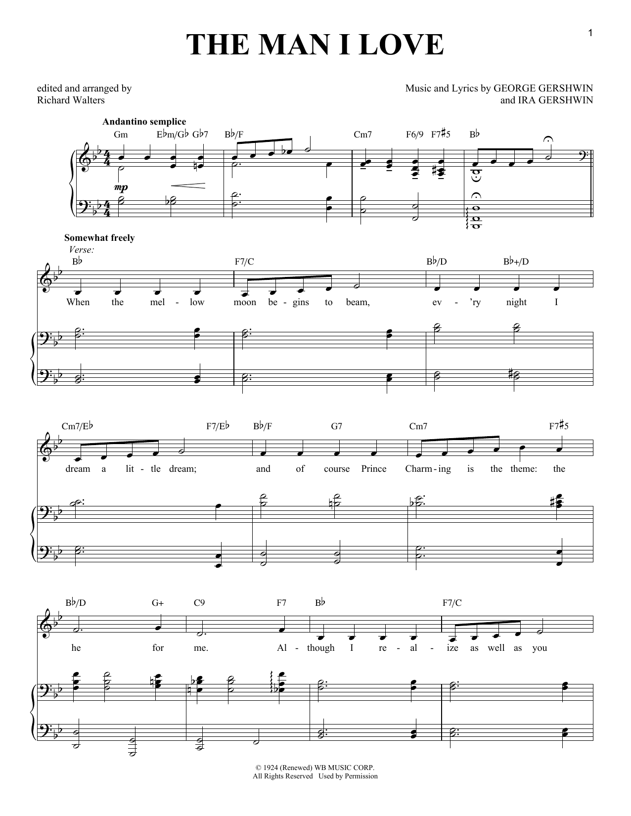 Download or print Richard Walters The Man I Love sheet music, chords and digital score arranged for Piano & Vocal. This Jazz score includes 5 page(s).