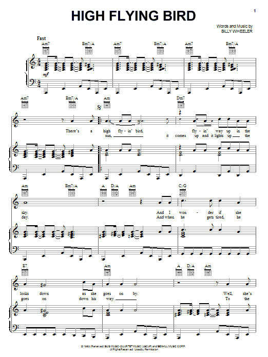 Download or print Richie Havens High Flying Bird sheet music, chords and digital score arranged for Piano, Vocal & Guitar Chords (Right-Hand Melody). This Pop score includes 5 page(s).