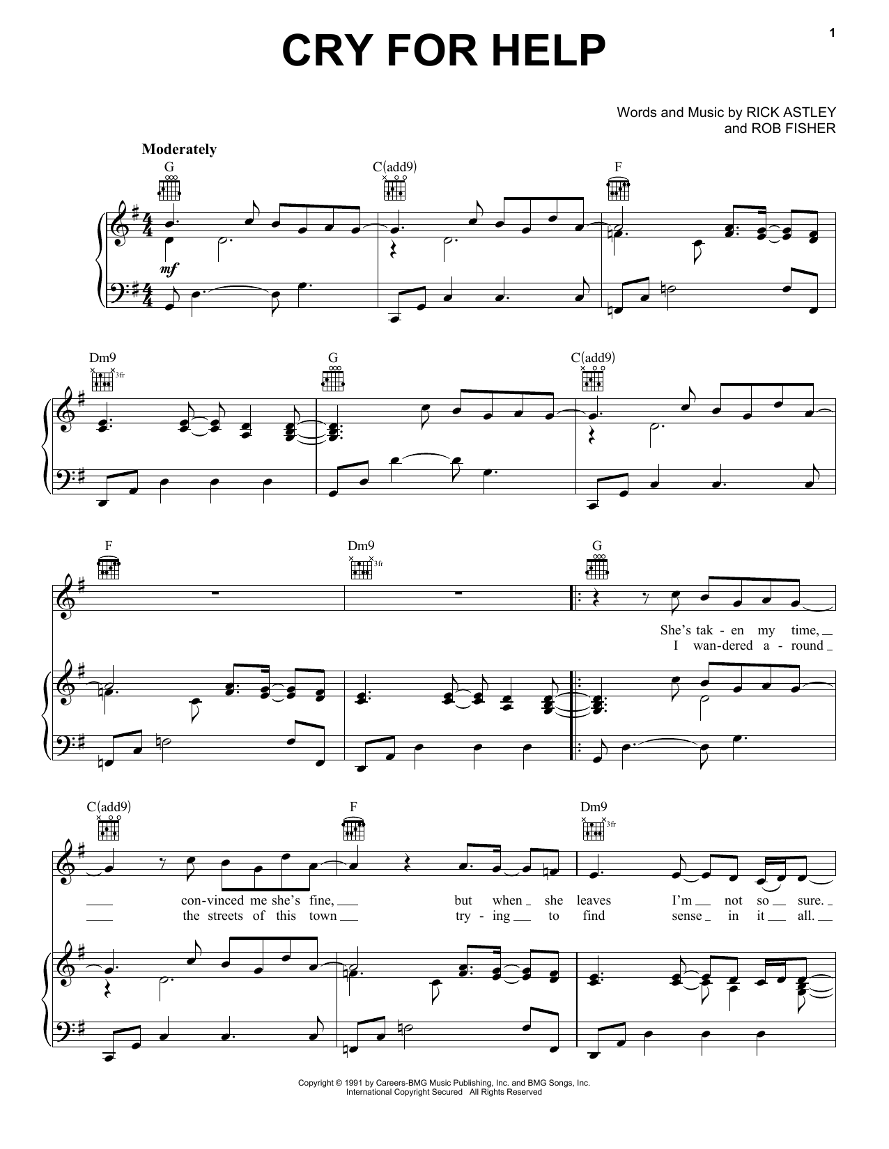 Download or print Rick Astley Cry For Help sheet music, chords and digital score arranged for Piano, Vocal & Guitar Chords (Right-Hand Melody). This Pop score includes 5 page(s).
