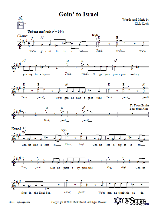 Download or print Rick Recht Goin' to Israel sheet music, chords and digital score arranged for Lead Sheet / Fake Book. This Traditional score includes 3 page(s).