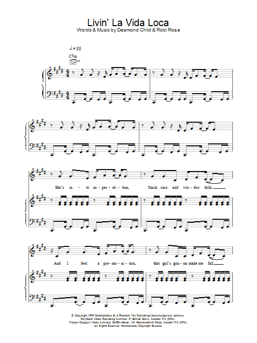 Download or print Ricky Martin Livin' La Vida Loca sheet music, chords and digital score arranged for Alto Sax Duet. This Pop score includes 2 page(s).