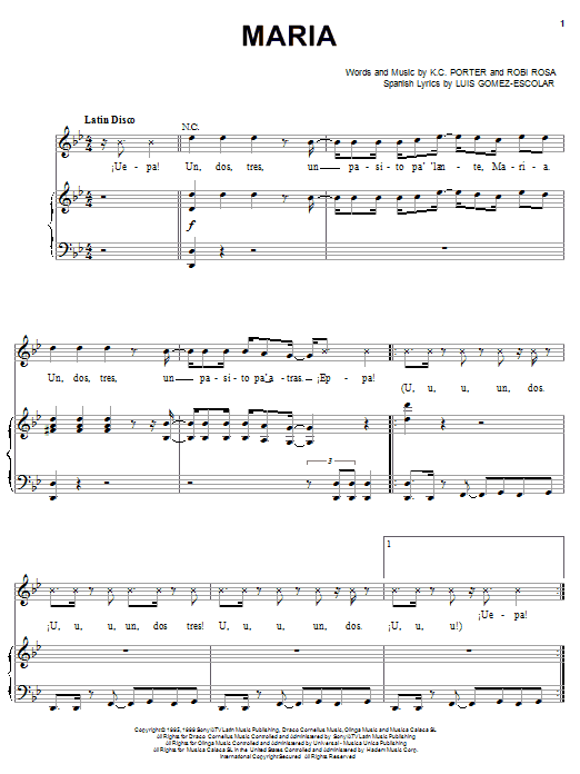 Download or print Ricky Martin Maria sheet music, chords and digital score arranged for Piano, Vocal & Guitar Chords (Right-Hand Melody). This Latin score includes 8 page(s).