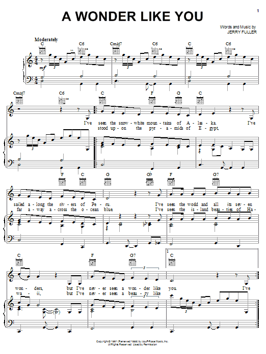 Download or print Ricky Nelson A Wonder Like You sheet music, chords and digital score arranged for Piano, Vocal & Guitar Chords (Right-Hand Melody). This Pop score includes 4 page(s).