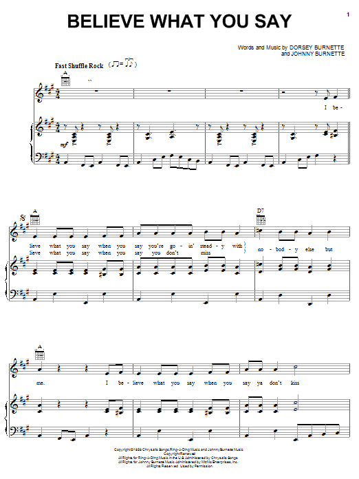 Download or print Ricky Nelson Believe What You Say sheet music, chords and digital score arranged for Lead Sheet / Fake Book. This Pop score includes 1 page(s).