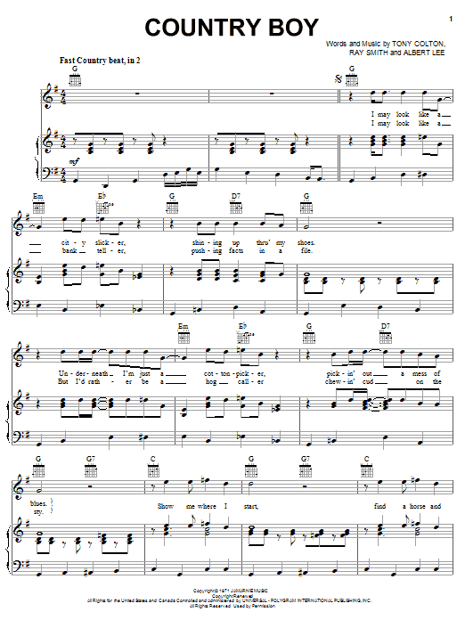 Download or print Ricky Skaggs Country Boy sheet music, chords and digital score arranged for Lead Sheet / Fake Book. This Country score includes 1 page(s).