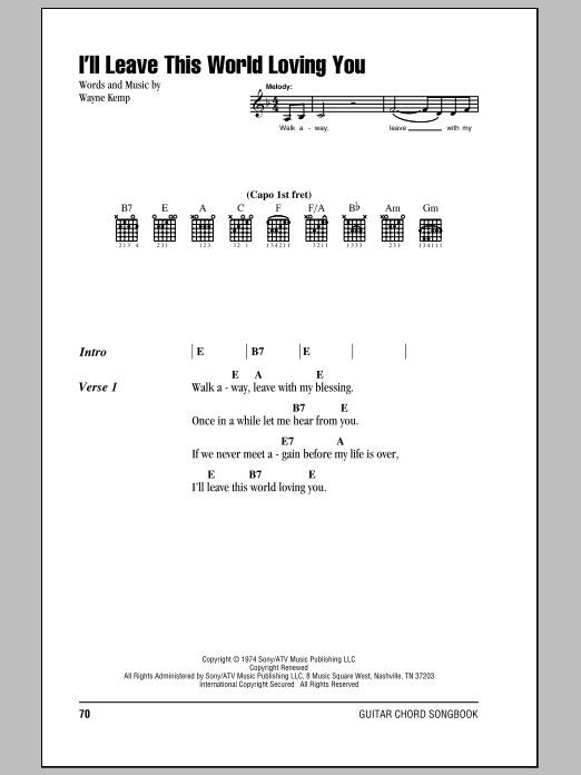 Download or print Ricky Van Shelton I'll Leave This World Loving You sheet music, chords and digital score arranged for Lead Sheet / Fake Book. This Country score includes 1 page(s).