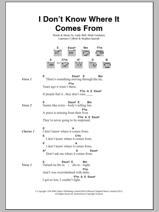 Download or print Ride I Don't Know Where It Comes From sheet music, chords and digital score arranged for Guitar Chords/Lyrics. This Rock score includes 2 page(s).