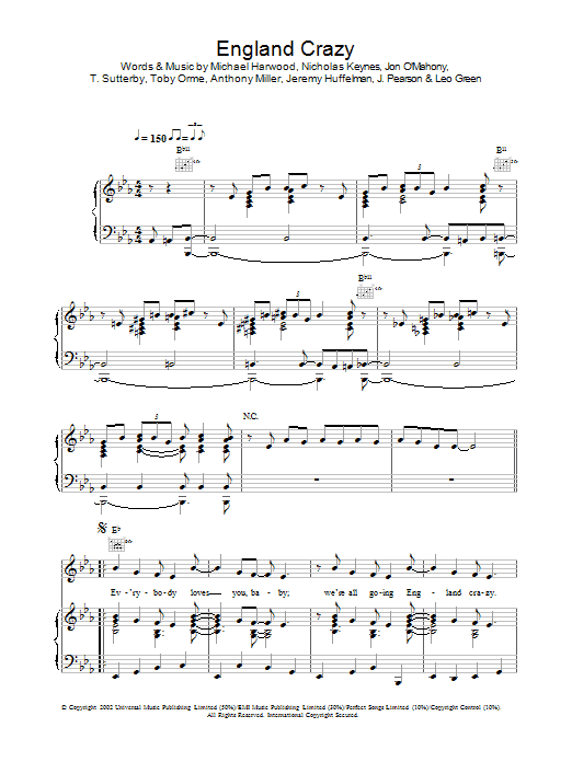 Download or print Rider England Crazy sheet music, chords and digital score arranged for Piano, Vocal & Guitar Chords. This Pop score includes 4 page(s).